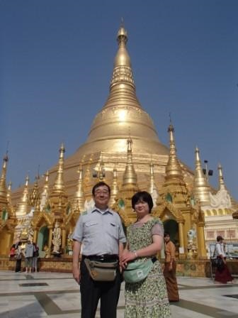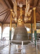 (^。^),もちろん歩いて丘を登ることも可能).エレベーターを降りて長い渡り廊下を歩き外に出ると,目の前に巨大な金色のパゴダが聳えていた.我々は時計回りにパゴダを一周してみることにした. |