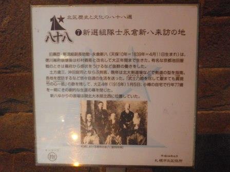 このように幕末維新期を生き抜いた永倉新八であったが,大正4年1月5日に小樽で亡くなった.伝えられるところによると口腔内感染からの敗血症だったとされる.彼の墓は先述した板橋のほか,小樽市の杉村家の墓所にも存在する.