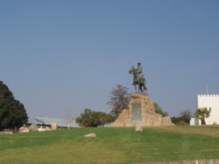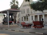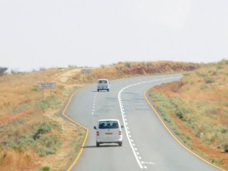 対面を済ませた後さっそく車に乗り込むのだが,ここウィントフックは晴天(まさに大晴れ),カッと照りつける太陽が熱い.我々が乗る車はちょうどサファリカータイプ,よく見るとルーフが開ける構造ではないか.そこで我々は添乗員さんとともに,このルーフを開けて走ろう!と,作業に取り掛かったのであるが….残念ながらレイノ君に「ダメ」といわれてしまい(どうも一般道では,ルーフを開けて走行してはいけないらしい),残念ながらルーフは元のように閉じることになった(泣).