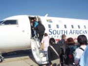 ウィントフックの空港からヨハネスブルグ行きのの飛行機に乗り込んでいきます |