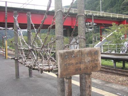 おおぼけ駅はほとんど全ての特急列車が停まる駅だが,その理由は人口が多いからではなく,観光名所だからである.車窓からも眺められた大歩危峡(川下りなども楽しめる)のほか,更に奥地に入ると平家の落人伝説で有名な祖谷渓や名所“かずら橋”がある.私とKは10年前に旅行に来たことがあるが,”祖谷そば”がなかなか旨く,温泉もある秘境であった(もっともこの祖谷渓に向かう道路は道幅3メートルくらいの曲がりくねった山道であった.この片側が断崖になった狭い道を,バスに乗って走るのはもの凄くスリルがある).
