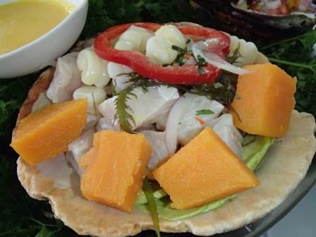 昼食会場のあったミラフローレス地区から海岸沿いに北上,途中から内陸に入って20分ほどで到着した(プエブロリブレ地区).この博物館は一見小高い丘の上に立っているように見えるのだが,実はただの丘ではなく,7世紀のプレインカ時代のピラミッド遺跡なんだそうである.敷地内に入ってみると,緑の多さに驚いた.
