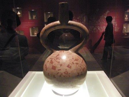 内部はインカやプレインカ時代各地の文化における土器や石の彫刻,織物,金銀の装飾品などが多数展示されていた.主要な展示品には各国語での解説文が添えられているのだが,日本語の解説もあってわかりやすかった.