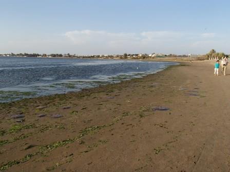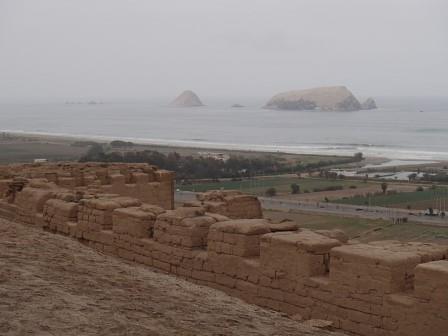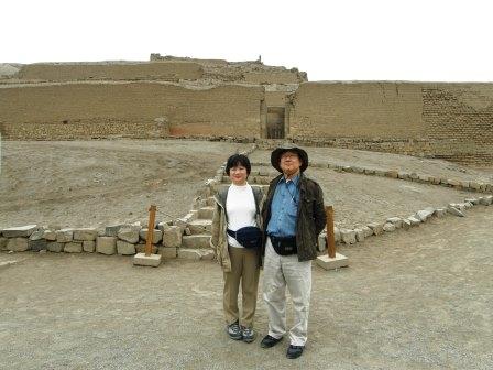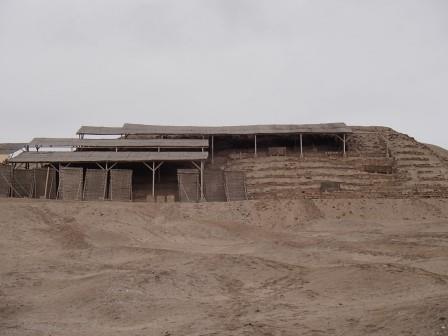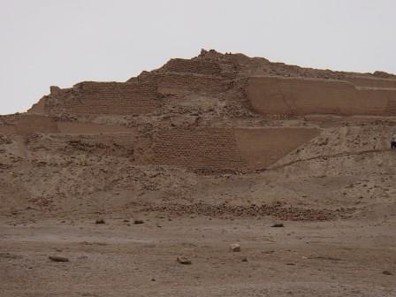 それでもなんとか市街地の渋滞を抜けて郊外に出た.周囲は海岸砂漠の単調な景色となる.約1時間ほど走って最初の観光場所,パチャカマク遺跡に到着した.