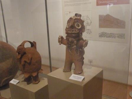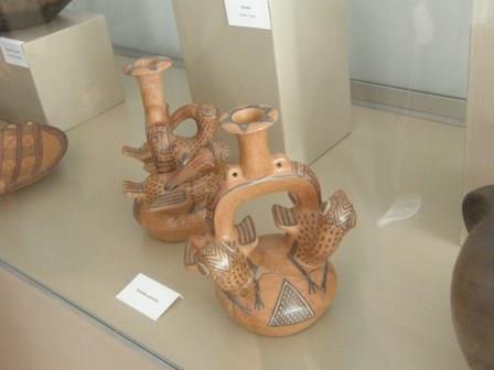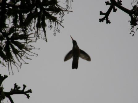 | 遺跡の後は近くにある博物館と復元された月の神殿を見学,博物館には当地に栄えた文明の出土品がたくさん展示されていた.土器やキープと呼ばれる結縄(縄の結び目で情報を記録する一種のメディア),仮面などがあって,旅行前に行ったインカ帝国展で展示されていたものにそっくりなのがたくさんあって驚いた.博物館の外に出てみたら,せわしなく羽ばたくことで知られるハチドリの姿あった. |