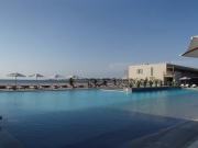 一般にインカというと堅牢な石組みで知られるが,この遺跡は巨石の少ない海岸砂漠ということもあるのか,資材の中心は日干し煉瓦で,これらを積み上げた壁や神殿跡がたくさんあった.我々はバスで途中まで入って神殿への坂道を登ったが,頂上から見る遺跡の全体像はあまりにも大きくて感動的だった.またここは地元の子供の学習場所にもなっているのか,野外学習風の大勢の子どもたちの姿も見えた. |