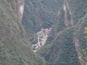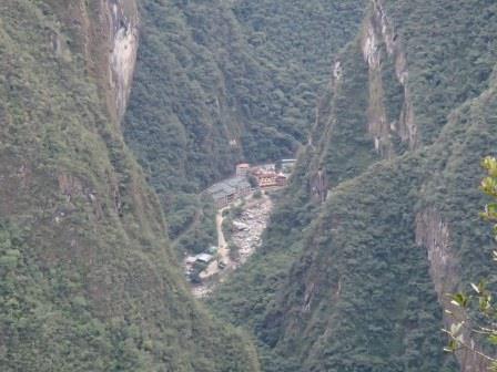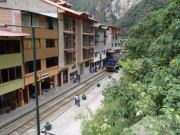 つづら折れの急斜面を下ってマチュピチュ村に到着すると,まずは昼食会場であるTOTO'S HAUSEというレストランに入った.ここはビュッフェスタイルのランチだった.その後列車の時間まで自由行動となり,少し村を歩いてみることにした.マチュ ピチュ村は両側を山に囲まれたウルバンバ川沿いの谷間に広がる村である.メインストリートを中心に小さなホテルや商店,レストランが並ぶ風景は何となく日本の温泉街を彷彿させるものがあった(実はここ,実際に温泉が湧いている.入る機会はなかったが…).昨日通過しただけのバザールのようなお土産物屋街には小物からアルパカのセーターまでいろんなアイテムが所狭しと並んでいて,賑わっていた.
