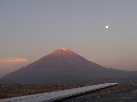 ペルー南部にある同国第2の都市アレキバは,13世紀のクスコの国王マイタ・カパックによって建設された町と言われている.この街の建設資材は近郊から算出される石灰岩を使用しているために,白い街の名が与えられている.この町並みが世界遺産になっているほか,郊外にそびえるコニーデ型火山(富士山型)のミスティ山の雄姿も見事である.