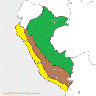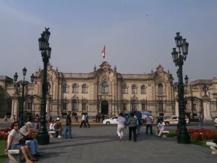 | ペルーの首都リマは16世紀にインカを征服したスペイン人,フランシスコ・ピサロが建設した太平洋岸の海岸砂漠の街である.そのメインとなるのがアルマス広場を中心とした地域(セントロ)である.ここにはピサロ自身が礎石を置いたとされるカテドラルをはじめとするコロニアル調の建物がたくさん立ち並んでいる. |