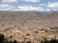 | インカ帝国の都だったクスコは標高3500メートルのアンデスの高地帯にある.インカ時代に築かれていた寺院や宮殿は,スペイン人によって破壊されてしまい,彼らは残されたインカの石組みの上にスペイン風の教会や住宅を建設した.ただ,16世紀末に発生した大地震によって,スペイン人の建てた教会や住居は大きく傷ついたが,インカの石組みはビクともせず,その堅牢さを示したといわれる.街全体が見ど |