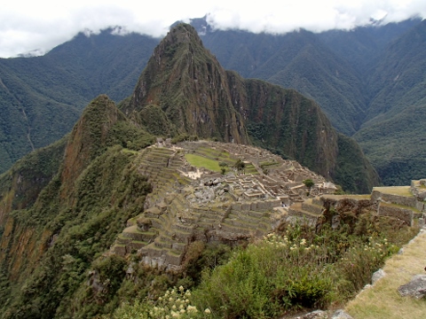 ペルーを代表する観光地である.アンデス山脈の山中の尾根筋に広がるさまから,天空の城の異名もある.インカ時代の後期に築かれたといわれ,かつては砦だったともいわれていたが,現在では宗教施設であったと考えられている.