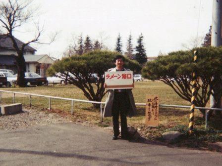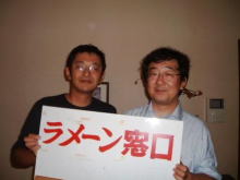 であった(この誤植は全国的にもよくあるらしく,インターネットで検索すると結構ヒットする).この看板はしばらくカウンターに貼ってあったが,平成2年に久しぶりにNとこの食堂を訪れたところ,看板には紙が張ってあった.昔のことを知っていたわれわれが店員に「この看板は何ですか?」と聞いたところ,「ああ,これですか.実はラメーンて書いてあるんですよ.だからお客さんにラメーンって何ですかとかラメーン下さいとかいわれるので隠してしまったんです」とのことであった.そこでNがその看板を譲ってほしい旨を伝えると店員は,店長に相談してくるといって席をはずした.しばらくして店長がやってきて「どうせもう使うこともないですからどうぞ」とあっさりと譲ってくれたのである.以後この看板はNの元に保管されていたが,先日遊びに行ったところ十数年ぶりに発見され感動した次第である.