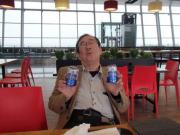 が,意外に空いていてあっさりと完了(ちょっと拍子抜け 笑),出国審査も終わって搭乗まで時間がかなり余ってしまった.こういう場合に時間をつぶす強い味方(?)がラウンジだが,今回はJTBからラウンジ利用サービスが付いていたのでそちらのラウンジへ入る.アルコールの他軽食が無料サービスだったので,朝食を兼ねていただいた(Kは醤油ラーメン,私はチキンカレー,その他ワインを飲んだのは言うまでもない 笑).かくして朝っぱらからほろ酔い気分で搭乗ゲートに向かう我々である.
