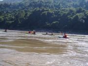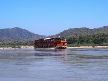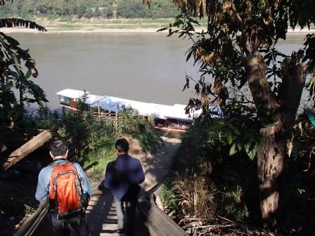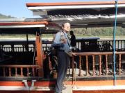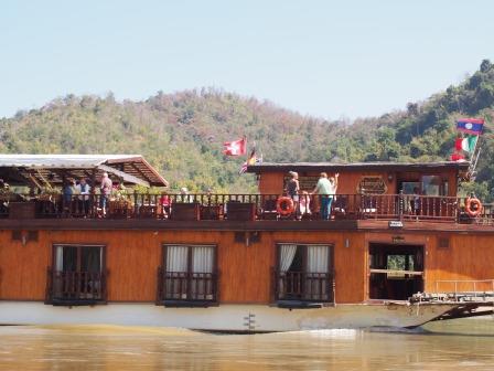 定期便ではないので定刻があるのかは不明だが,準備ができたらしく出航である.ここからメコン川の上流に向かっていく(なので最上川や日本ラインと違って船にはエンジンが付いている).