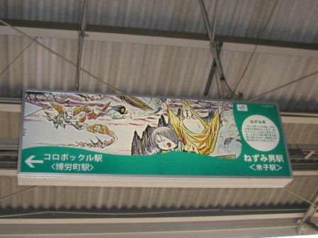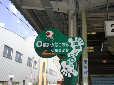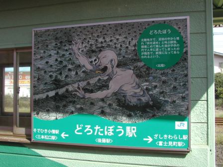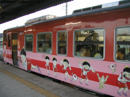 この境線の16全ての駅には,現在正式名とは別に,妖怪名の愛称が付けられている.また走っている気動車にも鬼太郎やねずみ男,ねこ娘などの絵柄がペイントされているのだった.