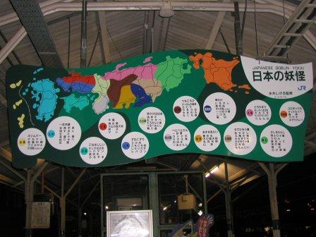 日本各地の妖怪を紹介した看板がかかってます. |