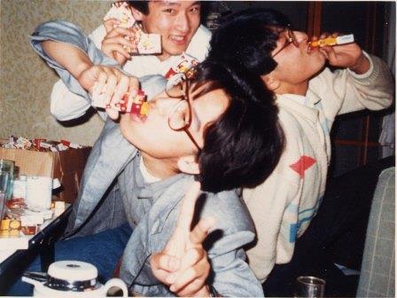 結局約200個以上のベビースターラーメンが我々の手に入ったのである.その後実際にこのベビースターラーメンを袋ごと放り投げ(さすがに中身を出してシャワーにするのはバチが当りそうなのでやめた.なんたって1人当り2000円位かかっているのだ)また,しばらくの間我々のおやつがベビースターラーメンになったことはいうまでもない. 数日後の夕方,我々はまだ買占めの余韻に浸りながら広瀬通(仙台市内のメインストリートの1つ)を走っている時,目の前に三重ナンバーの車がいるのに気づいた.仙台で三重ナンバーを目撃するなどめったにないことである.何だと思ってよく見ると,な,な,なんとボディーに松田食品の文字が! 松田食品はベビースターラーメンの製造元である(現在はおやつカンパニーと改称).もしや我々の買占めと関係があるのでは? 考えてみれば深夜突然,1つのコンビニチェーンからベビースターラーメンが姿を消せば,営業の人にとっては一体何が起こったのか気になるところであろう.実際この買占めの数日後近くのセブンイレブンに行ったがベビースターラーメンは品切れのままであった.この松田食品の車の目的は不明であったが(まさか車を停めて聞くわけにもいくまい),我々の買占めが関係している可能性はかなり高いと思われた. |