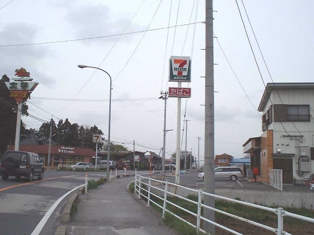 セブンイレブンというコンビニエンスストアには,特定地域に集中的に店舗を展開するという経営戦略があるらしい.このためローソンやサンクスが全国に満遍なくあるのに対し,セブンイレブンはきまった都道府県にしかない.私の住んでいる東北地方ではセブンイレブンがあるのは宮城・山形・福島の3県のみである.またこれらの県でも,店舗密度には地域によってかなりばらつきがある.これは輸送コストを低く抑えることに目的があるように思われるが,その結果いわば店舗の空白地帯が生じることになる.この空白地帯をたくみに突いたと思われるのが,ここで紹介するセブンメルシーである. セブンメルシーとは昭和60年代から宮城県の県北に3店舗(当時電話帳で調べた限りでは)展開している(いた?)コンビニエンスストアである.当時このあたりはセブンイレブンの空白地帯であった.名前から想像がつくように120%セブンイレブンのパクリである.ただここのすごい所は名前が似ているばかりでなく,店の看板までそっくりにしていたことである.名前だけ似ている店なら,たとえば”すかいらーく”をパクった”すかいぱーく”など他にもある.セブンイレブンの看板といえばでっかい7の字の下に小さくELEVENと書いてあるあれであるが,一方セブンメルシーの看板はでっかい7の字の下に小さくMERCYの文字.実際には色の使い方が微妙に違うため,並べてみれば明らかに別物とわかるのだが,普通の人は看板の色まで覚えていないので遠くから見ればまさにそのものである.私も何人かの友人に看板の写真を見せたが,全員がセブンイレブンの看板と信じて疑わなかった. このセブンメルシーの存在を教えてくれたのは,例によってNである.当時Nは家庭教師のためこの辺に通っており,その際に見つけたらしい.私も面白いので東北大学時代,弘前大学時代に何度か買い物にいった.その後就職してしばらく行かなかったが,平成12年久しぶりに行って見たところ目の前にセブンイレブンが開店しており,メルシーは廃墟と化していた.たしかに空白地帯であればこそ存在しえただろうが,本家本元が進出してくればあの看板で訴訟が起こらないはずはなく,撤退せざるをえなかったのだろう.ただ,あの看板だけは健在であり,かくして本物とニセ物の看板が並立する愉快な光景が見られるのであった.