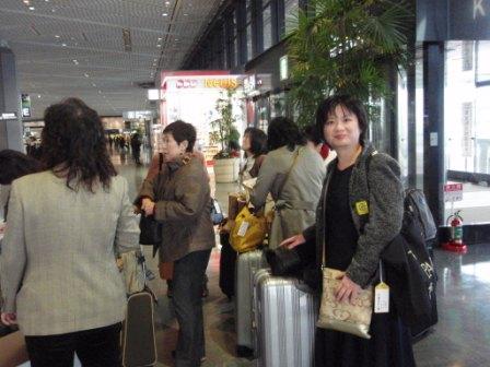 成田空港の出発ロビーにて(3泊4日の旅行にしては妙にスーツケースが大きい,何が入っているのか 笑) |