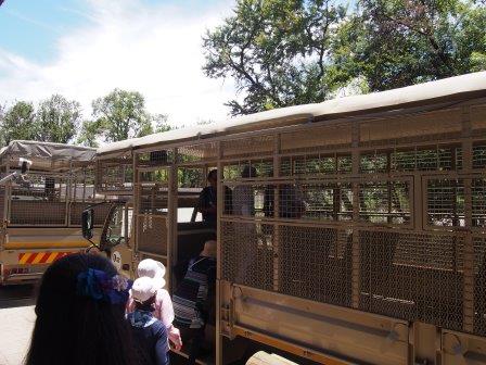 ゲームドライブの次はライオンパーク名物のライオンと触れ合うコーナー.ライオンの子供に触れるという企画である.以前はライオンを抱っこできる趣向だったが,動物愛護の観点等から今のスタイルになったものらしい.一組ずつ順番に触れ合う.ライオンは頭を触ってはいけないらしく,主に背中をなでる感じとなる.子供なので猫感は強いものの,怒らせたら怖いだろうなと思いながら触れていた.