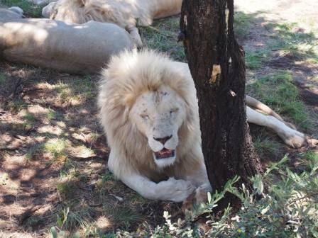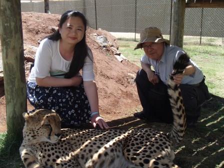 ここで別料金になるがチーターと触れ合うコーナーもあると聞き,行ってみることにした.こちらは子供ではなく立派なチーターである.ライオンとは違って頭を触るの可,特に尻尾をさわると喜ぶらしい.我々が触るとしきりに尻尾を揺らしていた(喜んでいたのだろうか).ライオン同様チーターも日中は気だるそうにしている.