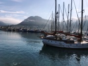 そんな住宅エリアを後にしてバスは大西洋岸を南下する.ケープ半島はなんとなく千葉県を彷彿させる形をしているが,最初の目的地は半島北西部,ちょうど浦安から市川の海岸部に相当するハウト・ベイである.この港から遊覧船に乗って近くのドイカー島に行き,オットセイの群れを見に行く趣向だ.ホテルを出発した頃は曇り空だったが,この頃から晴れ間が広がって来た.