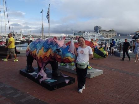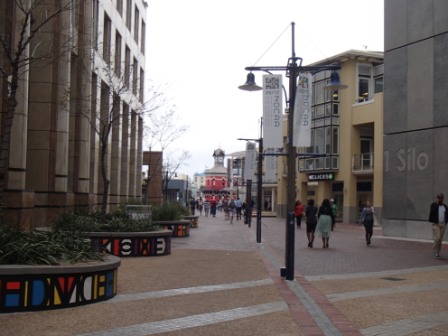 なんやかんやで16時過ぎまでここに滞在,その後バスに乗って町に戻る.約40分でウォーターフロント地区のショッピングモールに到着した.この後は1時間ほどここで自由時間,その後夕食という流れだ.一般に治安に不安がある南アフリカだが,こうしたショッピングモールは例外でたくさんの警備員や防犯カメラが設置されていて,スリや置き引き以外の犯罪は稀で安心して買い物ができる場所だ.ほかの参加者はさっそくショッピングに向かっていたが,基本的に買い物に関心が薄い我々はスーパーをちょっと散策した程度でそのまま外に出た.