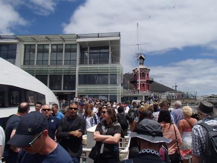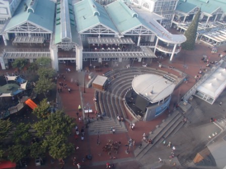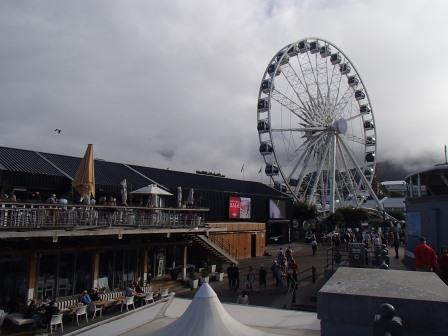 朝の曇り空とは打って変わりこの時間帯は晴れ渡っている(昨日と一緒だ).外では観光客が歩いていてまさに繁華街である.街角には大道芸人みたいな人もいた.ふと見ると目の前に観覧車がある.朝ロベン島行きの桟橋からも見えていて気になっていたところだ.集合までまだまだ時間があるのでせっかくだから乗ってみることにする.受付で料金を払って乗り込んだ.