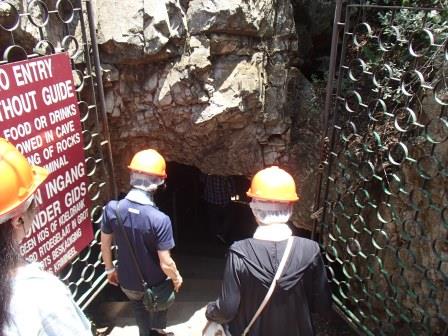 1時間20分ほどのドライブでまずはスタークフォンテン洞窟に到着,ここは別名人類のゆりかごとも呼ばれている.これは1947年にこの地で初期の人類(猿人)といわれるアウストラロピテクス・アフリカヌスの化石が発見されたからだ.周辺は高原地帯といった趣で,背丈の低い草が生えている.入り口でチケットを渡されるのだが,通常のカードタイプではなく手首に巻くブレスレットタイプだった.