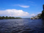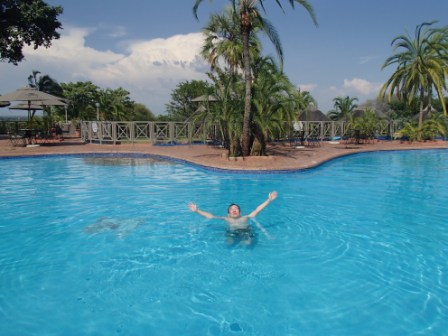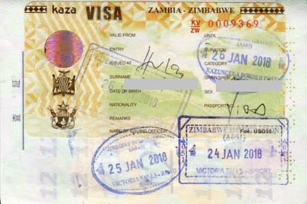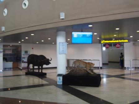 機体が停止し外に出ると,「あ,暑い〜」,涼しい高原のヨハネスブルグと大違いである.降機後はなるべく早く入国審査場に向かうべく足早に歩く.これはここで取得しなければならないビザのためである.ジンバブエは入国に際してビザが必要なのだが,これには1回ビザ,2回ビザ,数次ビザの種類がありそれぞれ値段も違う.一度入国してその後第三国に出国,おしまいという流れなら1回ビザで何の問題もないのだが,今回の旅行ではビクトリアの滝の観光のために一度ザンビアに出てその後ジンバブエに再入国,翌日にはチョベ国立公園に行くためボツワナに出国し,同日夕方にジンバブエ再々入国と都合3回入国することになる.こうなると一番高い数次ビザが必要になるわけだが,ここで強〜い味方が登場する.それはジンバブエ・ザンビア両国を行き来自由&ボツワナへの一時出国も可というユニビザ(KAZA VISA)である.値段は50米ドルと,ジンバブエ数次ビザ+ザンビアビザ(55米ドル+50米ドル=105米ドル)よりも断然安い!! しかしこのビザ,一日の発行枚数が限定されているらしく,ようは早い者勝ちなのだ.我々が急いで審査場に向かったのはそういう理由があったのである.