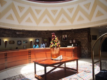 そんな審査場だったが,この日は観光客が少ないのかビザ発行カウンターにはほとんど人が並んでおらず,我々のユニビザ入手はあっさり成功 (^^)v. その後の入国審査から税関も極めてスムーズに通過し,13時には空港の到着ロビーに解放された(添乗員さんがこれまでの最速記録だと言っていた(ひどい時には抜けるのに2時間以上かかることもあるとか.これも日頃の行いの良さゆえとほくそ笑む). |
