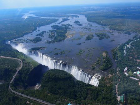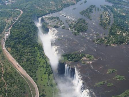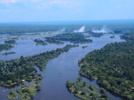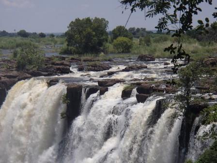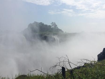 リビングストンアイランド(奥の水煙がメインフォールズ) |