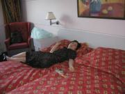 ラディソンSASトロムソの客室.ロストバッゲージのショックで寝てしまったK.白夜のため電気をつけなくてもこの明るさ |