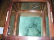 これが水面が覗けるスライド式ガラステーブルです