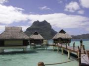 送迎ボートからは本島に聳え立つオテマヌ山が良く見える.切り立った崖の様相が男性的だ.もしかしたらここでロッククライミングに挑戦する人もいるのかもしれない.そのようなことを考えているうちに船はボラボラ・ラグーン・リゾートの桟橋へ着いた.