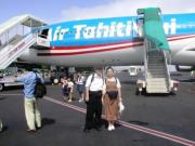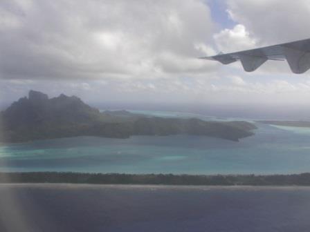 我々はエア・タヒチの小型機に乗り,一路ボラボラ島へ向かった.ボラボラ島へ行く飛行機は当然プロペラ機である.やはりKの顔は引きつっている.