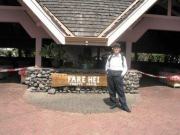 ホテルのロビーに入ると,まずはウェルカムドリンクのサービスを受ける.飲み物は椰子の殻に入ったそのままの状態で供されるココナッツジュースである.漫画やグラビアなどではよく見かけるが,実際に手にとって飲むのは初めてである.それまでは漫画などでしか見たことがなかったので,形態そのものには大変感動したのだが,味の方はというと,特にほっぺが落ちるという代物ではなく,特にKは「なんか青臭い」というような感想をもらしていた.そしてホテルの日本人スタッフ(ひとみさんという女性だった)による説明を受け,個室へと案内される. |