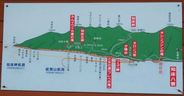そんな知床半島はその急峻な地形から川が直接海に落ちる滝が豊富にあることで知られる.特にウトロ側ではフレぺの滝,カムイワッカの滝など多くの有名な滝があり,主として知床半島クルーズ船から眺めることができる.