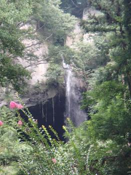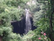本来ならこのお堂の左手から階段の参道を5分ほど登ると滝の直下まで行くことができる.巨大な岩盤から落差37メートルを直落する比較的細い滝で,滝に打たれるいわゆる滝行が行われる滝である.また滝の裏側は広い岩窟になっているため,裏見ができる滝としても有名である.