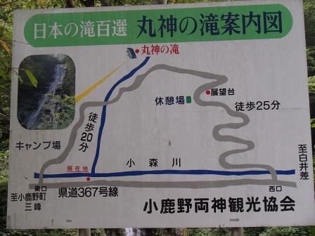 丸神の滝は奥秩父の小森川の支流である滝越沢にかかり,全体が三段になって落ちている滝である.その全体の落差は76メートルに達する(一段目12メート ル,二段目14メートル,三段目50メートル).ただ滝の全貌が見渡せるスポットはなく,アプローチの途中にある展望台から一,二段目が,滝下から三段目 を見ることができるだけだ.