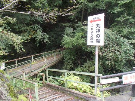 アプローチはバスもしくは自動車であるが,どちらの場合でも県道367号から遊歩道に入っていくことになる.遊歩道は県道の西側,東側それぞれにありこの2つの道は滝下で合流する(なのでどちらから入っても大丈夫だ).