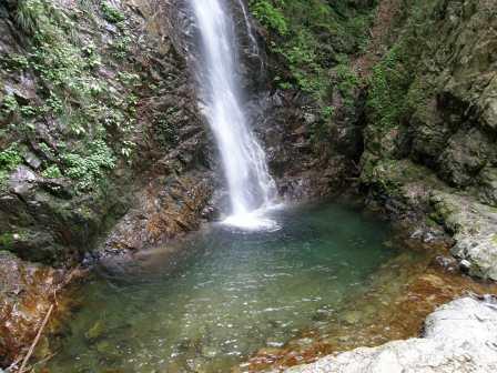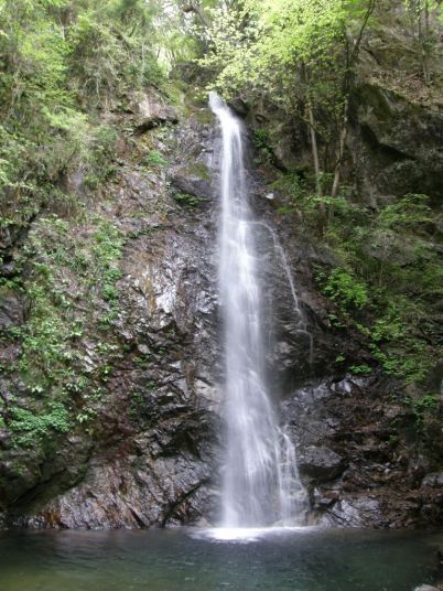 払沢の滝は多摩川の支流,北秋川にかかる滝である.全体は4段にわたって落ちている滝で,総落差は60メートル,最下段(1段目)の落差は26メートルになる.深い淵を形成しているその滝壺には大蛇が住んでいるという伝説があるというが,確かに青く澄んだ水には神秘的な雰囲気が漂っているようだ.またこの滝は冬季には氷結することでも知られている.