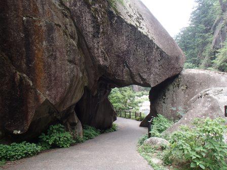 仙娥滝からさらに遊歩道を進んでいくと,昇仙峡を代表する景観である覚円峰や石門を楽しむことができる.この日は途中のグリーンラインのバス停まで30分ほどの散策を楽しんだ.