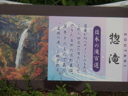 新潟県には3か所の百選滝があるが,そのうち2つを有するのが県南西部,長野県との県境に位置する妙高市である.同市はかつて新井市だったが,周辺の町村を合併して2005年に今の名称となった.その名の通り妙高山をいただく自治体である.この妙高山を挟んで南側に位置するのが苗名滝で,北側にあるのが今回のテーマ惣滝である.