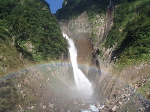 虹がかかる称名滝 |