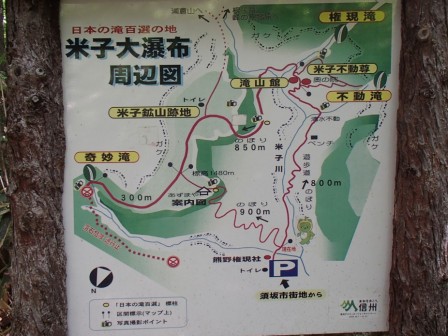 長野県には3つの100選滝が存在するが,県都長野からもっとも近くにあるのが,表題の米子大瀑布である.名前のイメージから鳥取県の西部にあるのかと勘違いしそうな気がするが,須坂市米子にある大きな滝という意から名付けられたもので,「よなご」ではなく「よなこ」と発音する.米子の滝と呼ばないのは,ここは一つの滝ではなく,米子不動滝と米子権現滝という2つの滝の総称だからだ.