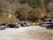 大滝川は標高差のある急流であり,大小の滝が連続している.散策にあたっては下流から川沿いに遡っていくことになる.岐阜県中津川市から長野県南木曽町の付近ではJR中央本線と国道19号線が木曽川を挟んで並走しているが,ちょうどJR坂下駅付近で国道19号から分かれて国道256号に入って木曽川を渡る.坂下駅直前で県道6号線に右折して北上,田立駅のちょっと前で左折して大滝川沿いの道に入った.そこからは道幅が狭くなるものの比較的人家も多く,あまり山奥に来た気分にはならない.田立の滝の案内板に従って進んでいき,田立の滝キャンプ場を過ぎてしばらく行くと滝への散策ルートの出発点である粒栗平駐車場に到着する.自分が訪問したのは紅葉終盤の11月の晴れの日10時頃だったが,既に10台くらい停まっていた.ここにはトイレの他に避難小屋の設備もあった(登山者の拠点にもなっているということか).
