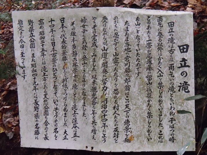 田立の滝案内板