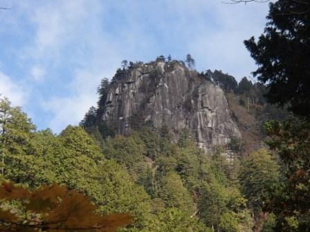 不動岩がそびえます(最終的にあそこまで登る) |