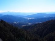 ちどり桟橋を過ぎると川が浅瀬になったところに出る.ここは龍ヶ瀬と呼ばれる場所で,ほかの観光客が昼食を摂っていた.そこから少し行ったところに再び川を渡る橋があり,ここから見えるのが「鶴翼の滝」である.本来ならこの更に上流に「そうめん滝」という変わった名前の滝があるのだが,残念ながら通行止めになっていて見ることができなかった.仕方がないので橋を渡ってそのまま不動岩の山頂の展望所に向かう.一段と険しい坂道を喘ぎながら登り,結局駐車場から2時間半で展望所に到着した.ここからは恵那山をはじめとする木曽の山々,中津川の市街地などが良く見えるのだが,山々が青みがかっていて,木曽のブルーマウンテンズか,などと思ったのだった.この日はここで昼食を摂りその後下山,結局全行程4時間強のトレッキングであった.
